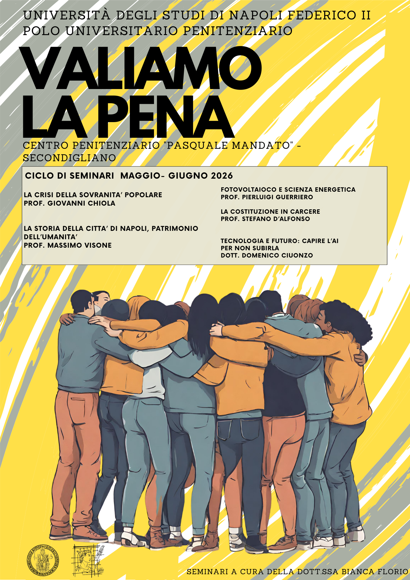 La costituzione del Polo Universitario Penitenziario dell’Università Federico II è un’iniziativa che vede il più grande Ateneo del Mezzogiorno farsi costruttore di giustizia sociale e promotore della dignità dell’uomo, alla quale in alcun modo e per nessun motivo si può derogare. La funzione rieducativa della pena, richiamata dal dettato costituzionale, non può e non deve essere in alcun modo inflittiva, ma deve divenire una fase costruttiva nella vita di coloro che hanno commesso degli errori; una rieducazione che è rieducazione sociale, quindi reinserimento, relazione con la collettività e con l’esterno. Anche la Corte Costituzionale è stata molto chiara in tal senso, affermando che è dovere istituzionale accompagnare il cambiamento culturale all’interno del carcere, facendo si che “quel residuo di libertà che resta all’interno delle mura sia esaltato nella sua massima potenzialità”, perché è quel “residuo di libertà” che permette di capire se una volta fuori il detenuto sia realmente in grado di costruire e gestire una libertà definitiva.